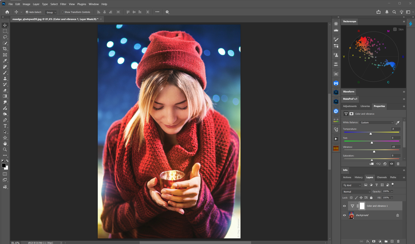 A Vectorscope is a tool used in color correction to analyze the color information of an image. It visualizes the hue (color value) and saturation (color intensity).