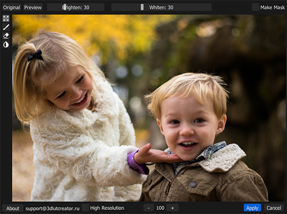 Автоматически находит зубы на фотографии и отбеливает их. Получите фотографии с белоснежной улыбкой!